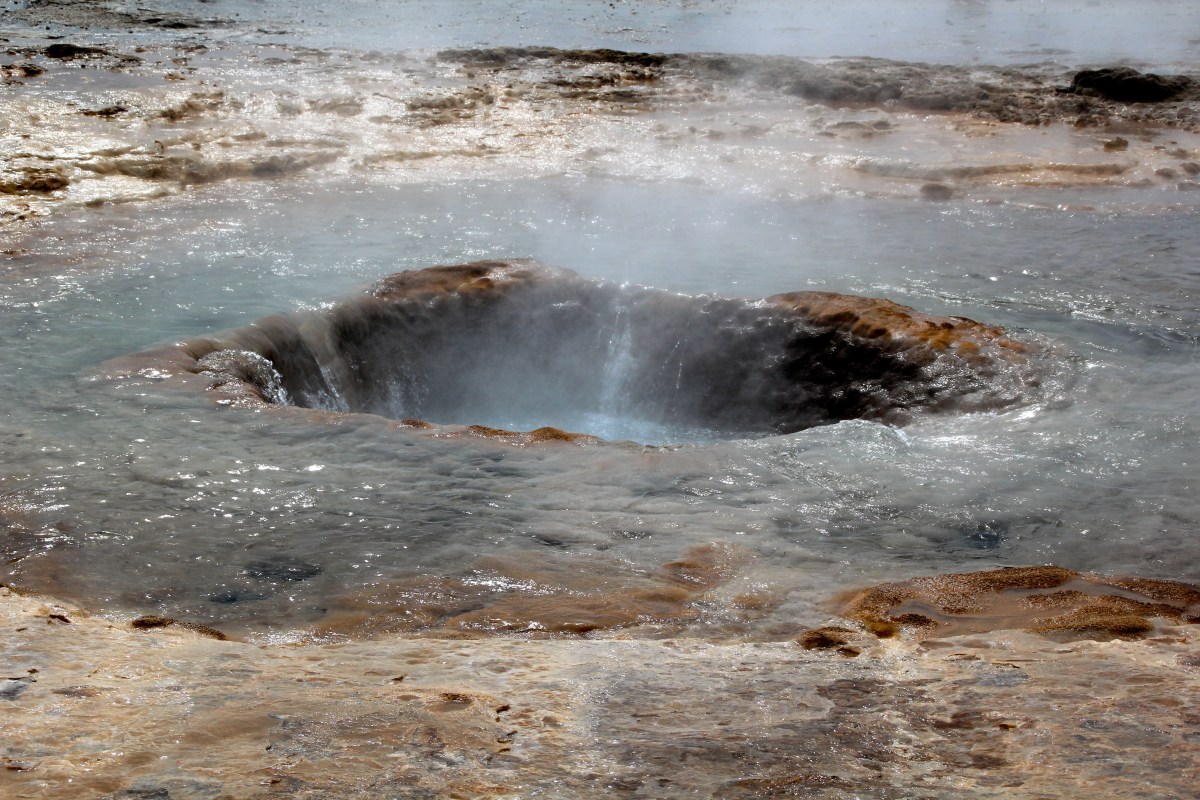 Het melkblauwe water heeft een temperatuur van 38-40º C. Er is zelfs een hot-pot van wel 50 graden! Een fantastische opwarmer in het zo kille weer van vandaag. Met de rug naar de wind en alleen het hoofd boven water…….. mmmmmm.