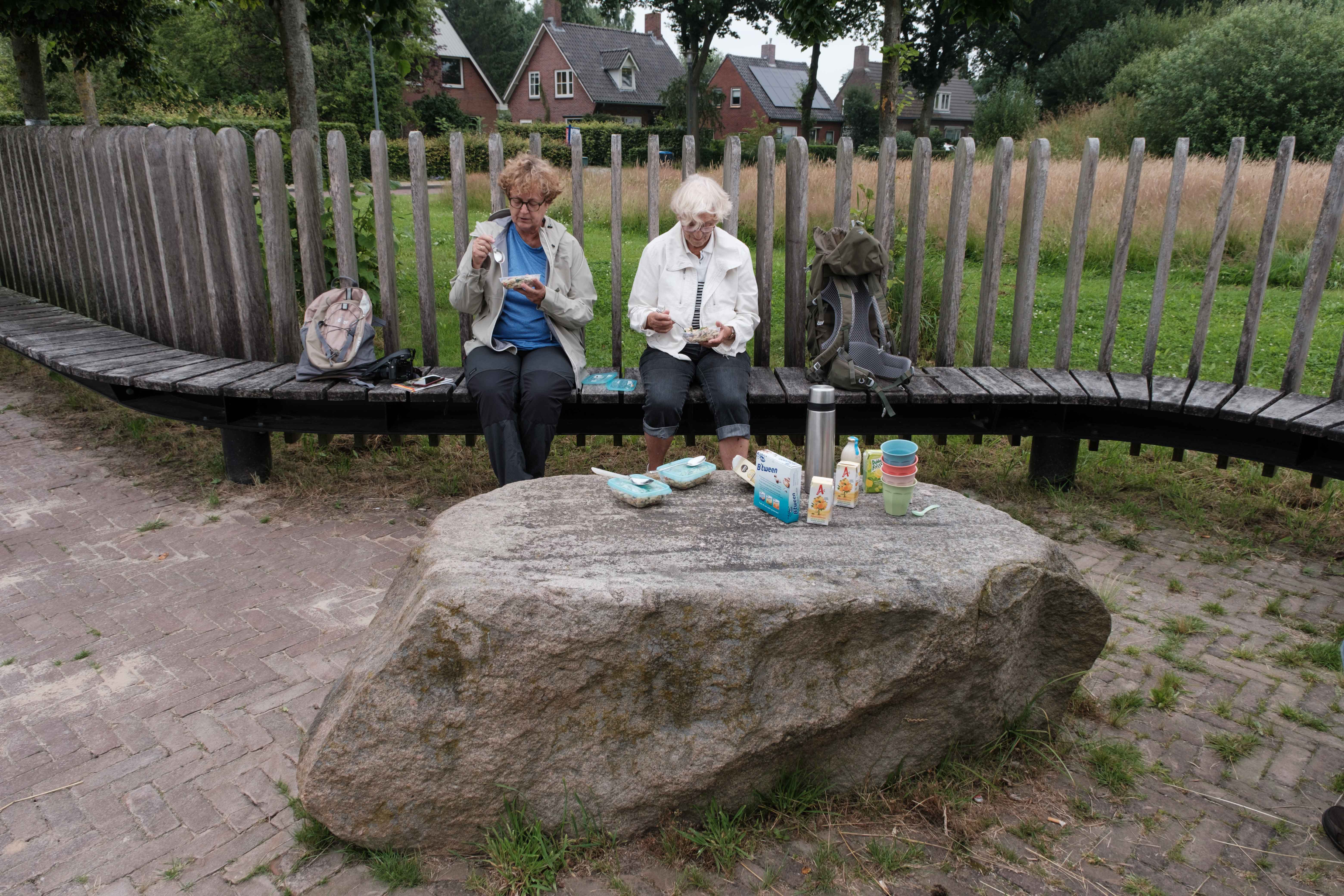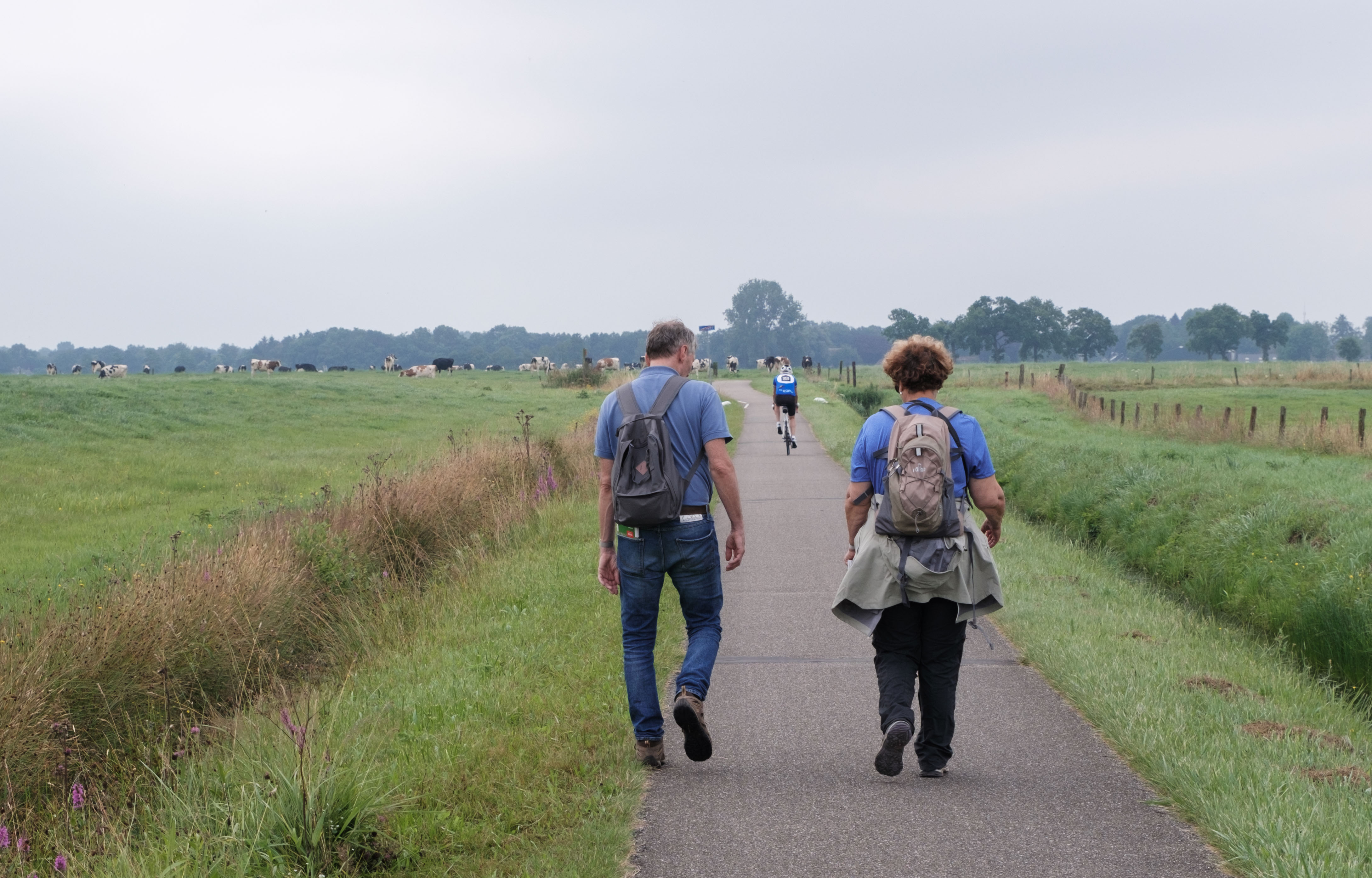 Het zuiden van Nederland is inmiddels tot rampgebied uitgeroepen vanwege de enorme regenval en de gevolgen daarvan. Een lokale (Limburgse krant) zal later vandaag melden: ‘Zware regenval zorgde donderdag voor gigantische problemen in Zuid-Limburg. Donderdagavond hielden de buien na drie dagen eindelijk op, maar de overlast is nog steeds niet voorbij. Nu het Maaswater snel stijgt zetten steden en dorpen langs de rivier zich schrap.’ Het beschrijft een ongekende situatie die door de heftige beelden krachtig wordt onderschreven. Hoe anders is het in het noorden. Vandaag is het hier weliswaar iets minder droog en zonnig dan gisteren, maar voor ons is het toch uitstekend weer voor een vervolg stukje Drenthepad. We willen vandaag lopen van Eelderwolde naar landgoed De Braak en vervolgens door naar landgoed Vosbergen. Eelde-Paterswolde is ‘veur de riek’n’ zeiden ze vroeger al in Groningen. Geld dat in Groningen verdiend was, werd uitgegeven in Eelde en Paterswolde, waar in de 18e en 19e eeuw prachtige landgoederen en buitenverblijven werden gebouwd. We zijn benieuwd!