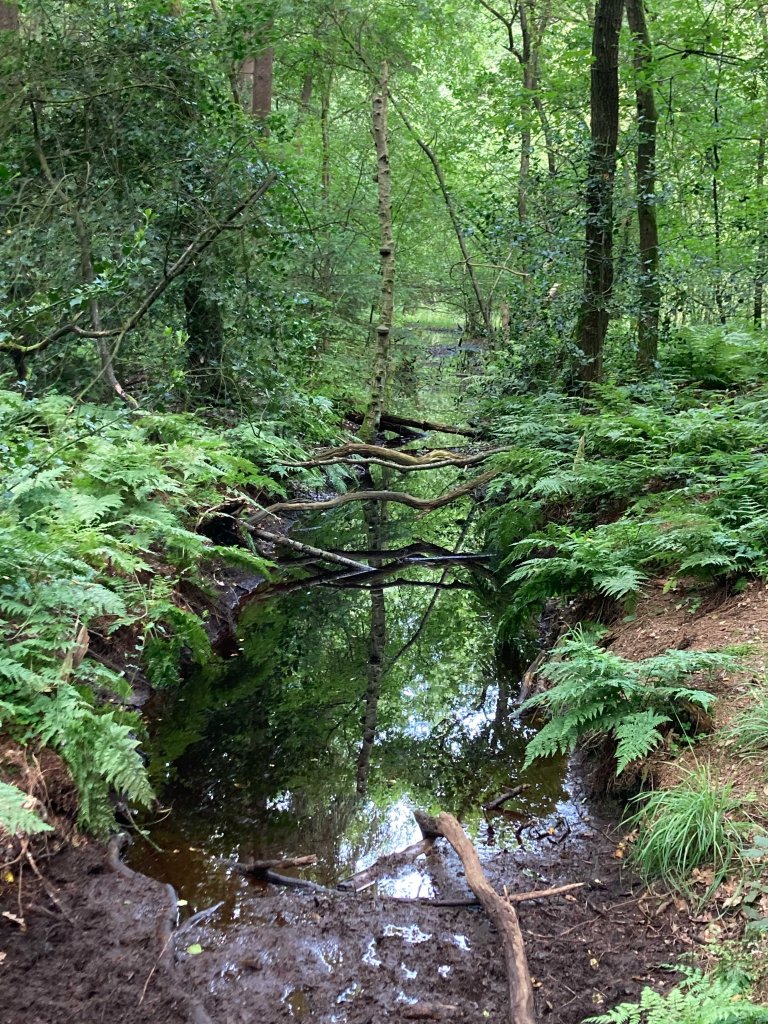We zijn langzamerhand aangekomen bij ons eindpunt van vandaag: landgoed Vosbergen, opnieuw een onderdeel van de ‘landgoederengordel Eelde’. Hier begon het allemaal met het echtpaar Kraus-Groeneveld, dat in 1890 een boerderij en wat bos kocht. De boerderij werd in de loop van de tijd uitgebouwd tot de huidige villa en het landgoed tot zijn huidige omvang van 110 ha. Dat het hier vochtig is, is goed te zien aan de vele uitbundig groeiende varens.