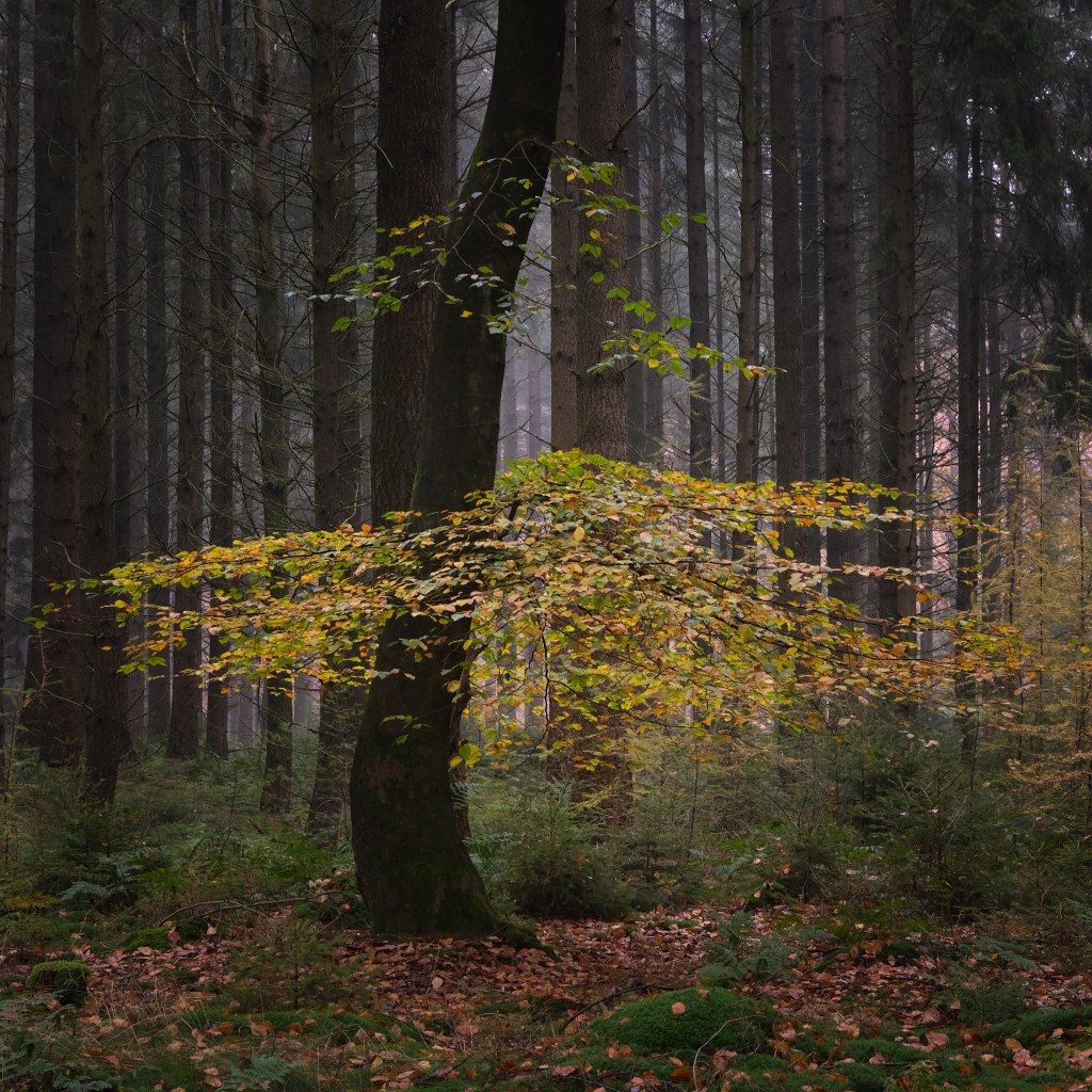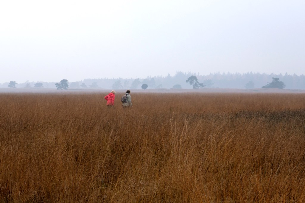 Toch is het gebied waar we doorheen wandelen allesbehalve grijs (lees: neutraal en passief). Het Hart van Drenthe wordt omschreven als ‘een robuust natuurgebied van 4000 hectare aaneengesloten natuur met gevarieerde bossen, tientallen vennen, weidse heidevelden en bronnen van beekdalen’. In deze eindeloze natuur is elk moment van de dag anders. Om de website te citeren: je ervaart hier ‘de mystiek van zon en nevel, de geur van alles wat groeit en bloeit, de afwisseling van open vennen en donker bos, de overweldigende stiltes en het gevoel dat je soms de natuur voor jezelf hebt.’ Zoals hieruit blijkt hebben we hier dus niet te maken met een ‘grijze muis’ (iets onopvallends) en is dit terrein misschien wel het best te omschrijven als een ‘grijs gebied’, waarin de dingen niet eenduidig zijn. Grijs is door haar ingetogenheid mogelijk minder geschikt voor een eerste kennismaking, maar zeker wel voor een ingetogen gesprek. Dat gesprek moeten we dan maar eens aangaan, nietwaar?