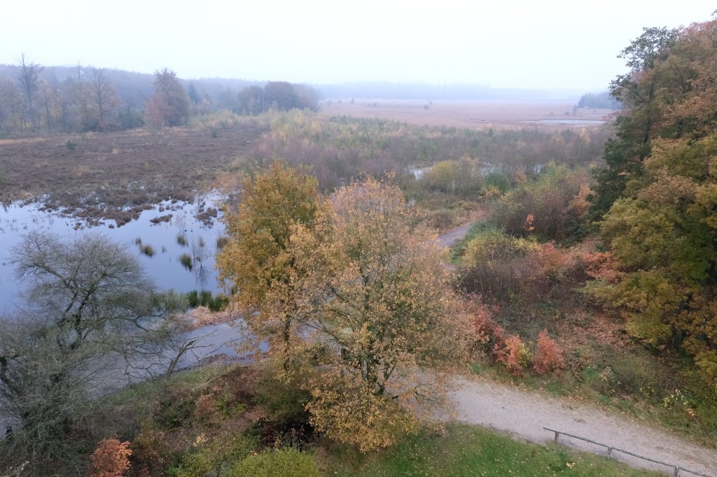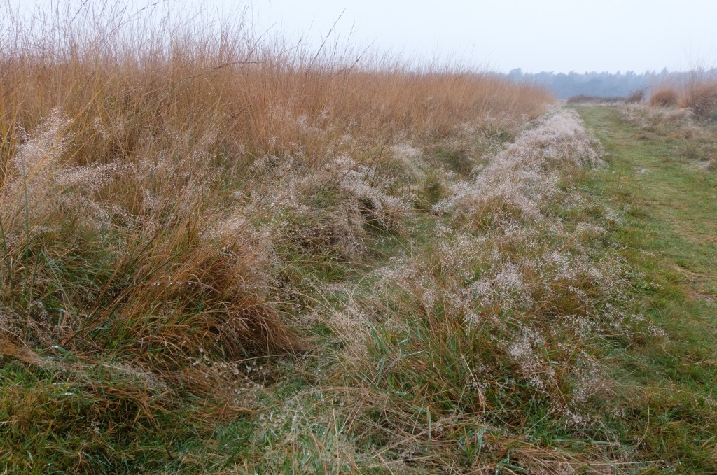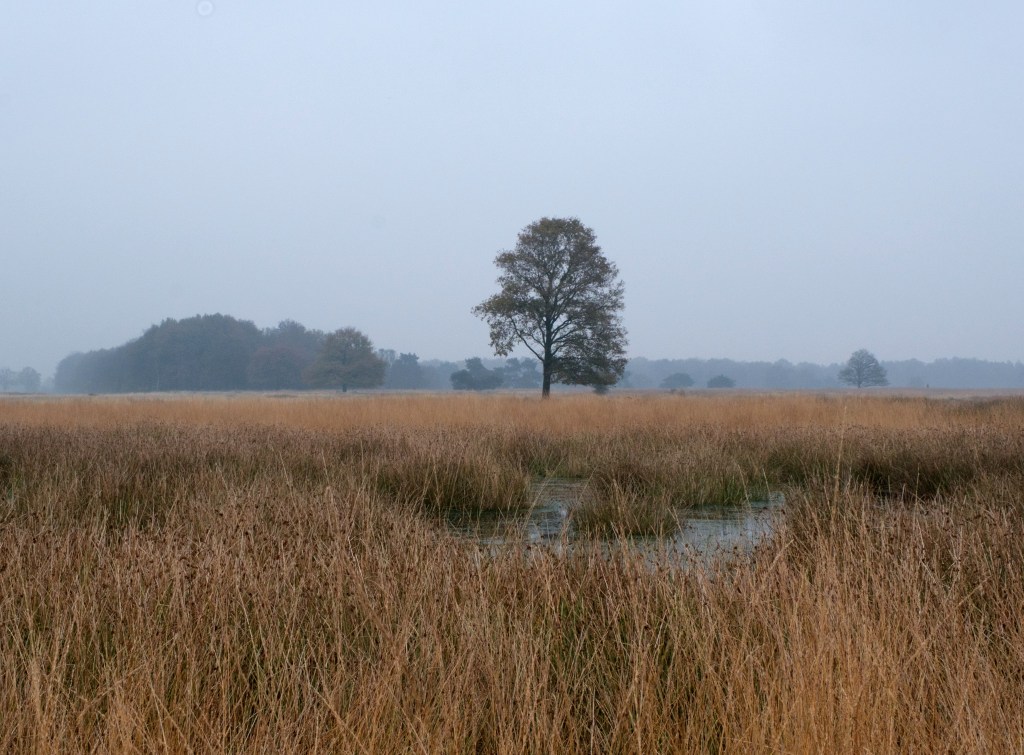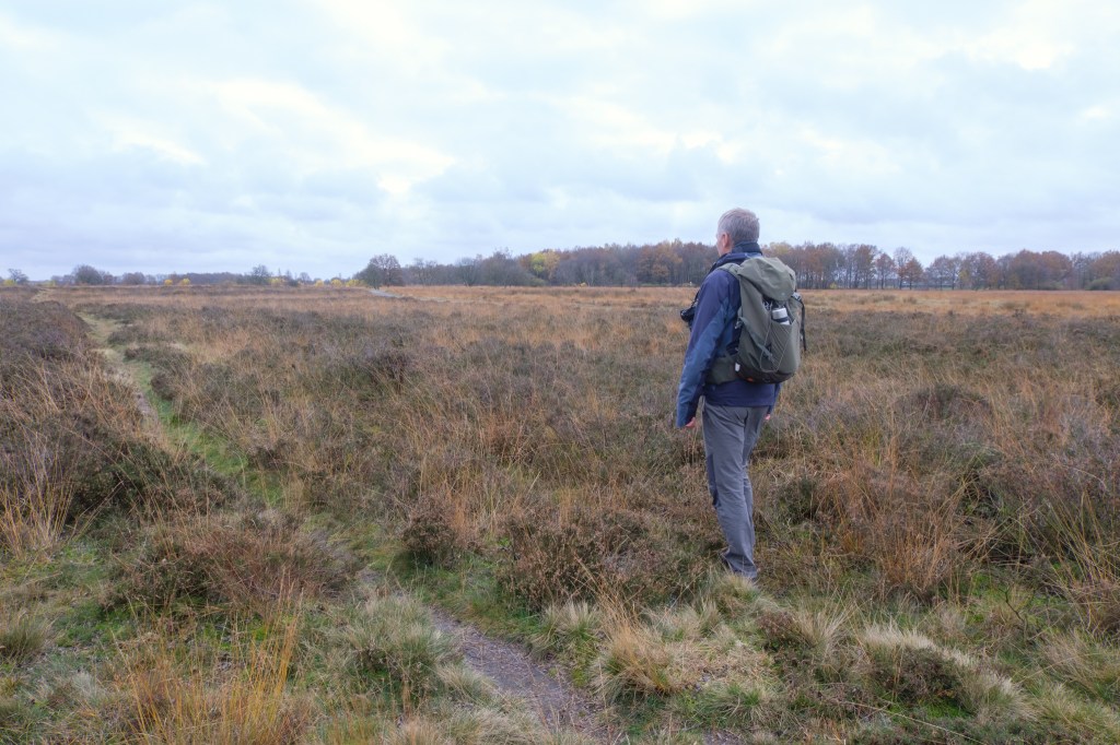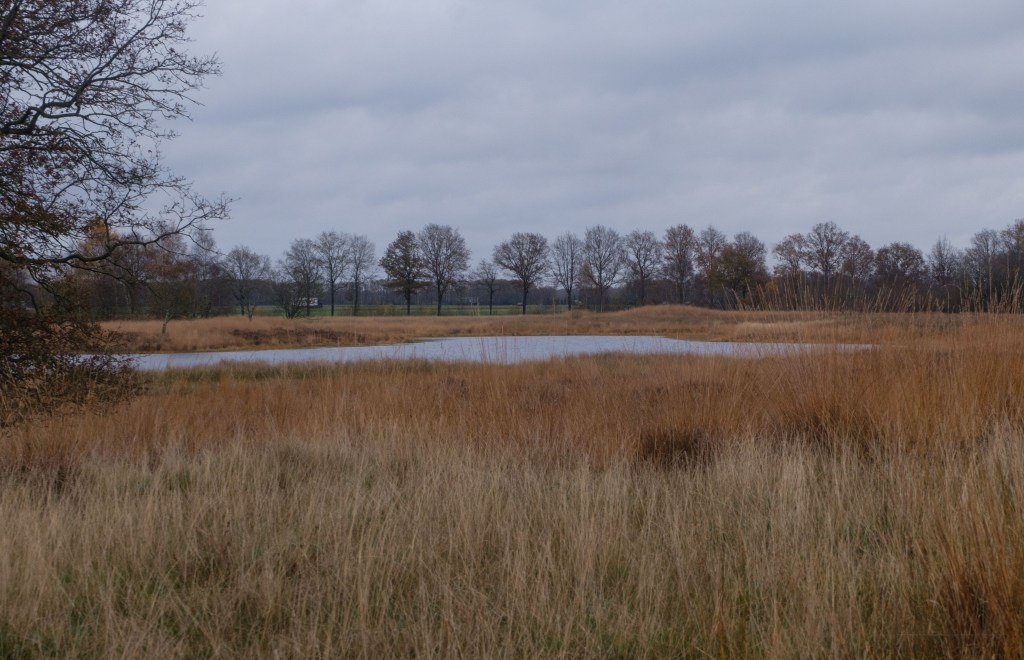Onderweg wandelen we weer door gebied van de grote grazers. We zien ze deze keer niet. Het is hier echter allesbehalve stil of zijn we het stiltegebied alweer uit? Op de achtergrond van alle vennen en grassen zien en horen we de auto’s voorbij razen. Misschien staat de wind verkeerd (voor ons) en horen we het lawaai zo duidelijker, maar hoe dan ook ……. het woord stiltegebied dekt hier de lading niet!