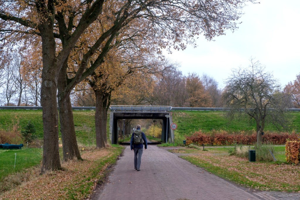We lopen vervolgens langs een minder inspirerende ‘overbruggingsweg’ omdat we onder de weg Emmen-Drachten door moeten om bij de Brunstingerplassen te komen.