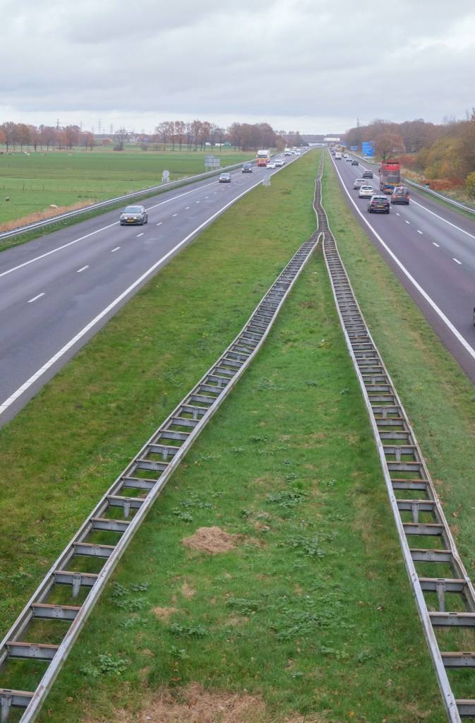 Langzamerhand horen we de A28 steeds duidelijk. We moeten hier overheen om Beilen te bereiken.