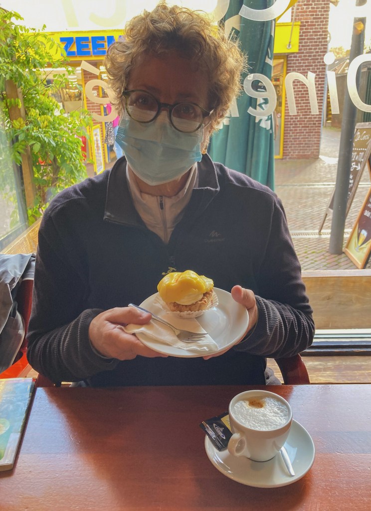 Al met al heeft deze dag door de verhalen en ontdekkingen onderweg toch kleur gekregen. Over kleur gesproken…….. Een bakker uit Beilen ontwierp eens een gebakje waarover hij marsepein plooide ‘gelijk de bolle wangen van een perzik’. De associatie was er eentje van zacht van kleur en lieflijk. Er moest een naam worden bedacht voor dit gebakje. Grootmoeder bracht de oplossing met haar opmerking: ‘Het lijkt wel een kontje!’ Zo is in 1975 het Drents Kontje geboren. In het hart van Drenthe (zoals Beilen ook bekend staat) hap ik met blozende wangen voldaan en tevreden in mijn kontje. Een goed besluit van de dag! Het hart van Drenthe kent letterlijk en figuurlijk kleur zowel in haar natuur als in haar dorp.