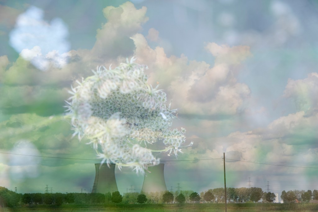 Als je in Doel rondloopt, kun je niet om de kerncentrale heen. Zo verlaten als het dorp is, zo druk is het in de centrale met haar koeltorens die overal bovenuit torenen. Hier werken zo’n 2000 mensen en de productie zorgt voor ongeveer de helft van het elektriciteitsverbruik in België. Ik lees: ‘alles klopt en niks klopt. Het is bijna een ode aan het absurdisme. Al helemaal wanneer de lieflijke Scheldemolen ruw afsteekt tegen de wolken blazende koeltorens erachter. Dat beeld vat het allemaal samen. De oprukkende vooruitgang die als een pletwals boven het ideaalbeeld van het dorp hangt. Het is een parabel van onze tijd. Of we dat nu willen of niet.’