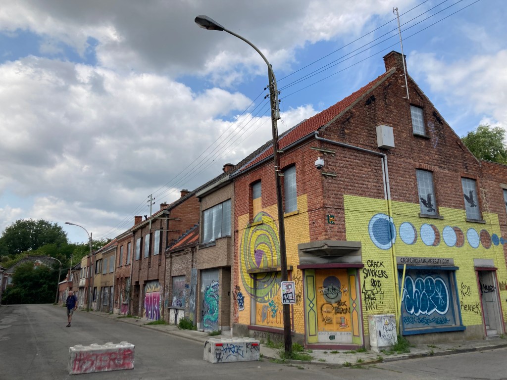 Vanaf het moment dat de inwoners Doel hebben verlaten, is het dorp zo ongeveer overgenomen door artiesten die met hun spuitbussen kunstwerken hebben gemaakt op de leegstaande gebouwen. Om de krakers en andere indringers te weren, zijn recentelijk de ramen en deuren van de verlaten huizen volledig afgesloten met metalen platen. Spijtig genoeg schijnt hierdoor ook veel van de mooie graffiti verloren te zijn gegaan. Toch is er nog meer dan voldoende over voor ons om te bewonderen. Daar waar de boel niet is dicht getimmerd wonen nog mensen. Het lijkt me een haast surrealistische ervaring om in zo’n verlaten dorp te wonen. Een beetje unheimisch door het verval en tegelijkertijd met een enorme intrigerende bonte uitstraling waardoor het dorp een toeristische attractie is geworden. Wij zijn in ieder geval niet de enigen die hier vandaag ronddwalen…….