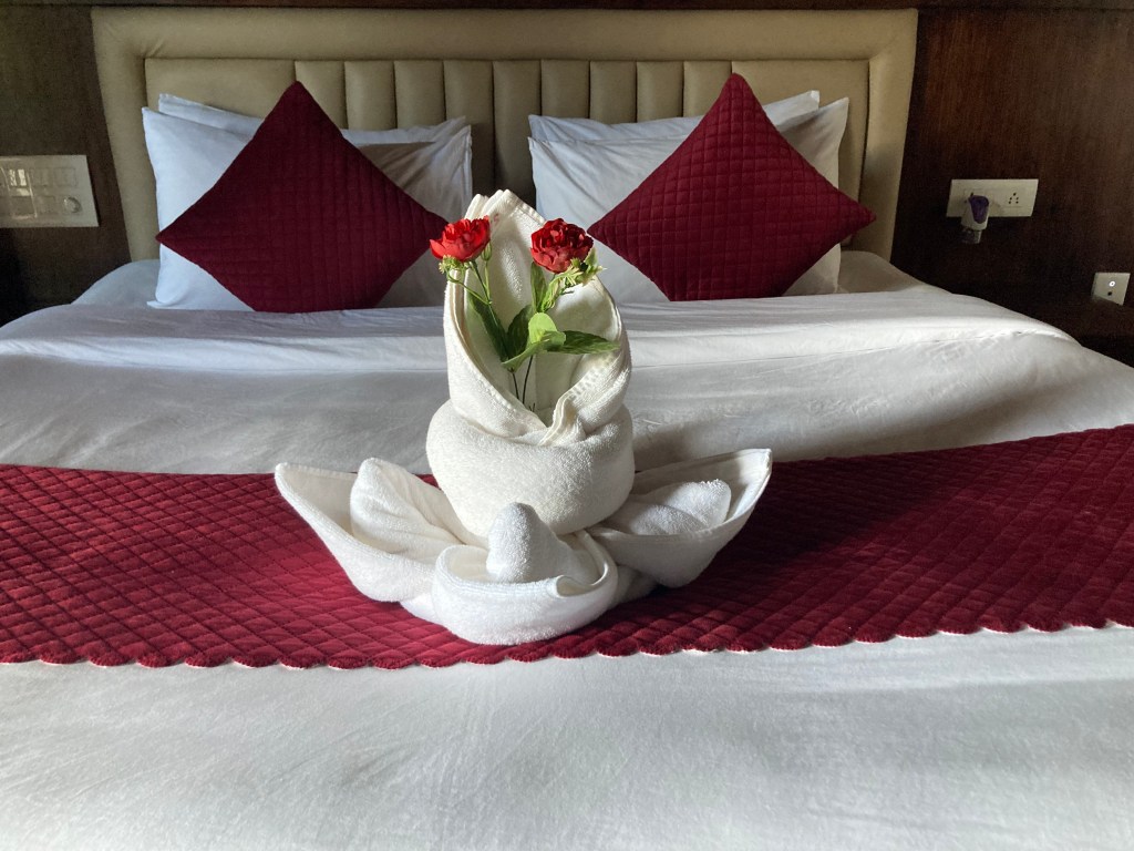 Na een lange reis met een flinke stop-over in Abu Dhabi (waar we even heerlijk konden slapen in het AUHotel op het vliegveld) kwamen we gisteravond om 8 uur aan in Calicut of Kozhikode. We begrijpen later dat het ons bekende Calicut als de Engelse (koloniale) naam voor de stad wordt gezien en dat Kozhikode tegenwoordig weer in ere hersteld is als oorspronkelijke traditionele Indiase naam. Sajeesh, onze chauffeur voor deze reis, heet ons met een brede lach voor het vliegveld welkom. Was ook vast niet zo moeilijk, we zijn praktisch de enige buitenlanders hier. We arriveren om 9 uur in het Raviz Hotel en zitten om kwart over al aan een uitgebreide Indiase maaltijd met al onze favorieten. We zijn er!