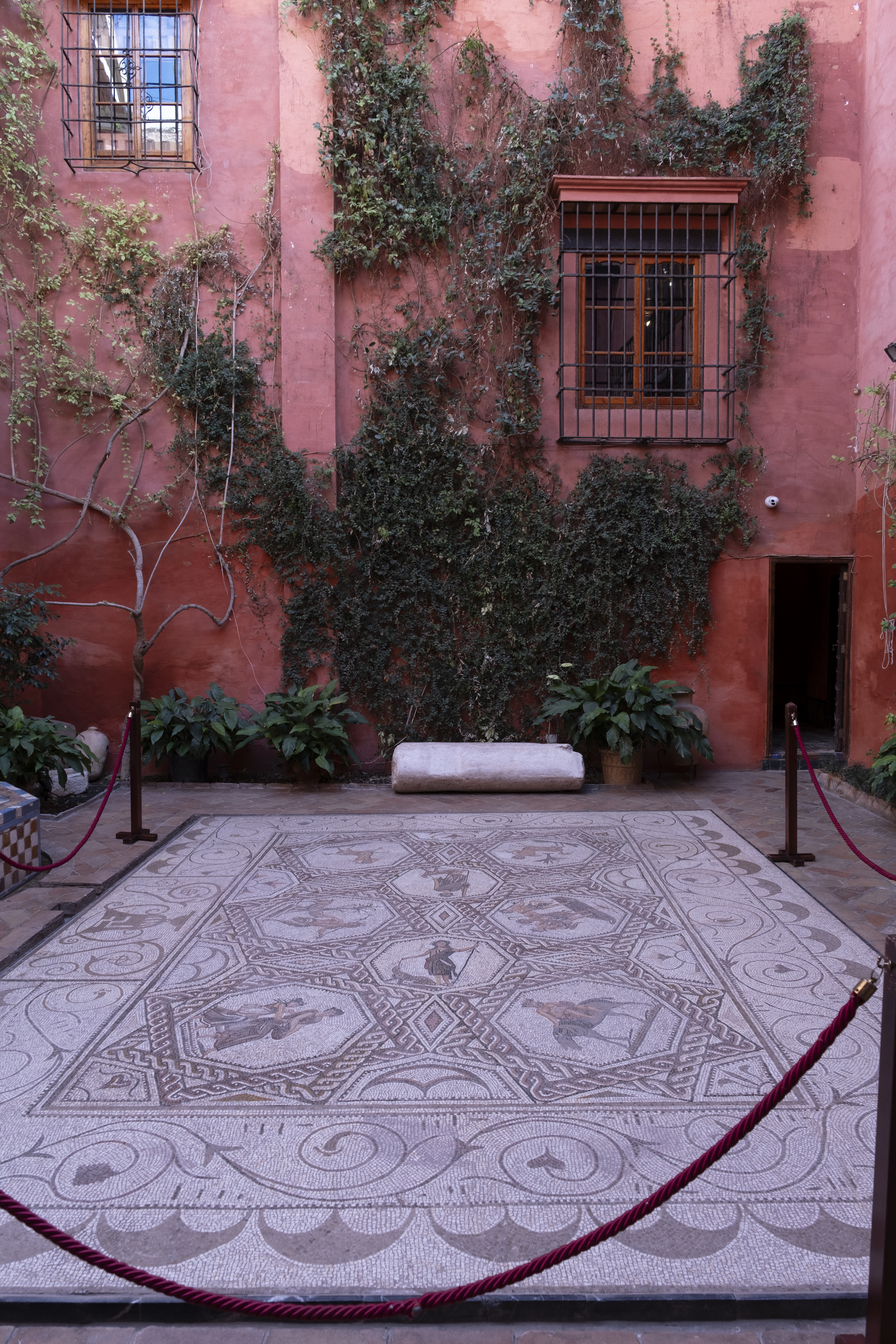 De muren zijn bedekt met tegels gemaakt in Triana. Wanneer je de tweede patio betreedt zie je een prachtig mozaïek uit de 2e eeuw, gewijd aan Bacchus, welke afkomstig is van de archeologische opgravingen van de Romeinse stad Itálica.