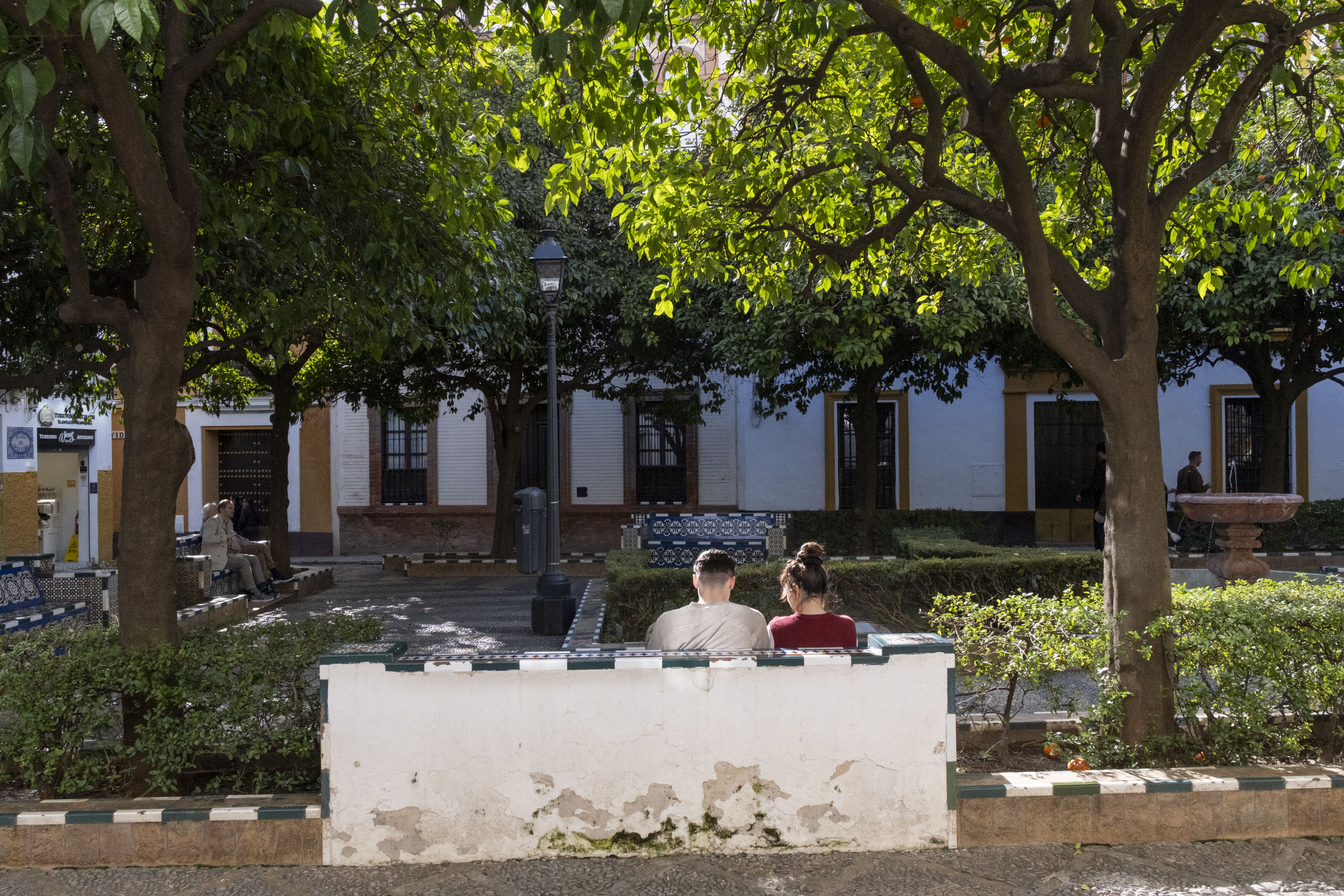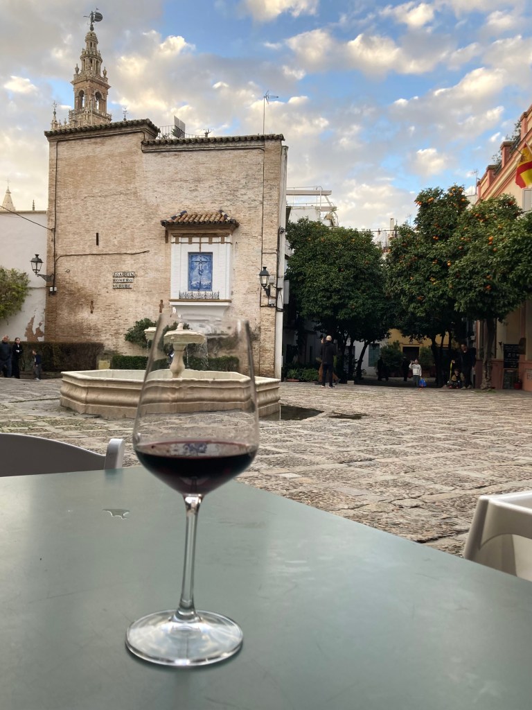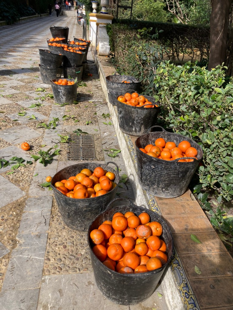 We logeren deze keer hartje centrum aan een pleintje vol sinaasappelbomen. Sevilla schijnt de meeste sinaasappelbomen ter wereld te hebben – naar schatting zo’n 50.000! Deze traditie gaat terug tot de tijd van Al-Andalus, de middeleeuwse moslimstaat alhier van 711 tot 1492. Ze geloofden dat het planten van een sinaasappelboom geluk bracht. Als bijkomend voordeel werden de vruchten gebruikt voor medicinale doeleinden. In de lente verspreiden de bloesems (azahar) een heerlijk zoete geur door de stad. Een nadeel is dat naar schatting 90% van de inwoners in meer of mindere mate hooikoorts heeft…..