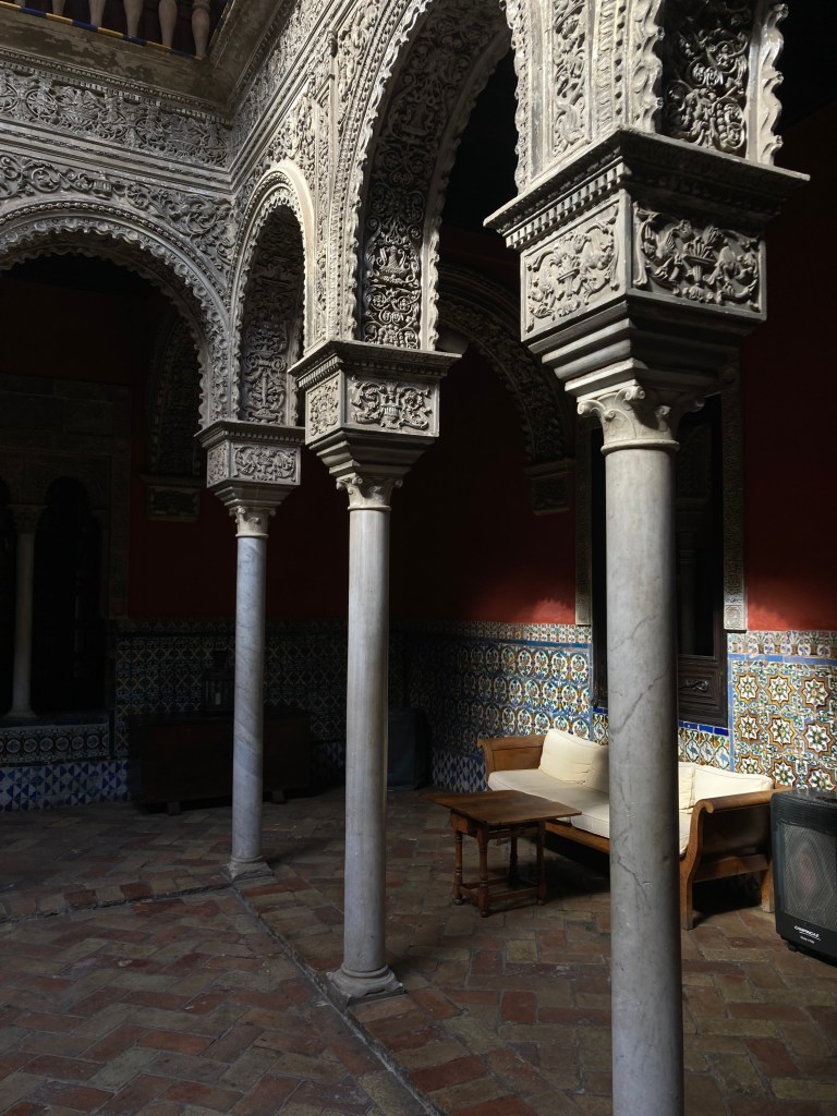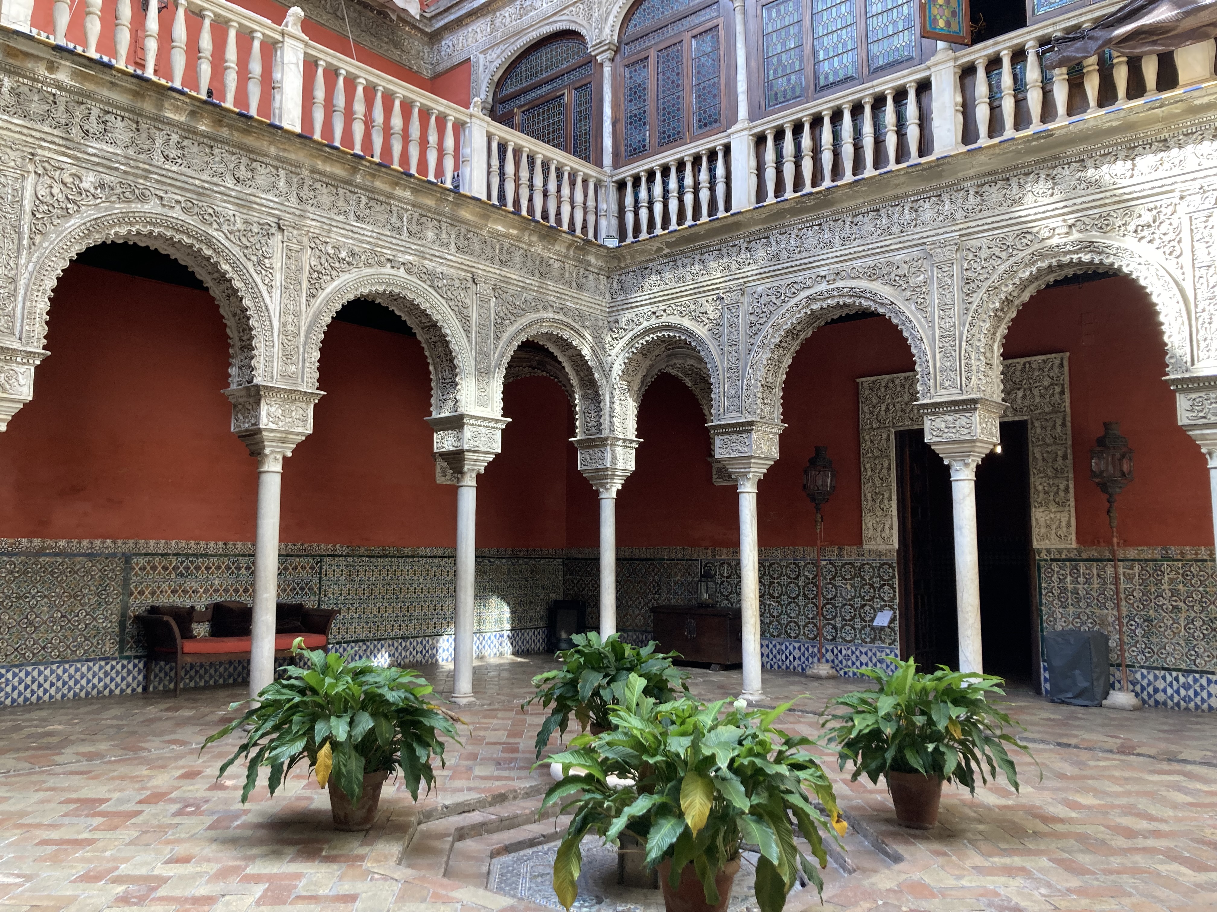 Behalve de kathedraal is Sevilla ook een stad vol prachtige paleizen en herenhuizen, waarvan Casa de Salinas, een privé paleis, er eentje is die we nog niet eerder hebben gezien. Het is een ‘hidden gem’, aan de buitenkant haast onopvallend in het straatbeeld, maar van binnen vol rustige patio’s, prachtige mozaïeken en zuilengalerijen. Extra bijzonder is dat het geen doorsnee museum is, maar een echte woonplek. Casa de Salinas werd gebouwd in de 16e eeuw, een tijd waarin veel rijke families in Sevilla grote herenhuizen lieten bouwen rond mooie binnenplaatsen. De prachtige binnenplaats van Casa de Salinas werd in de tweede helft van de 16e eeuw regelmatig gebruikt voor premières van toneelstukken.