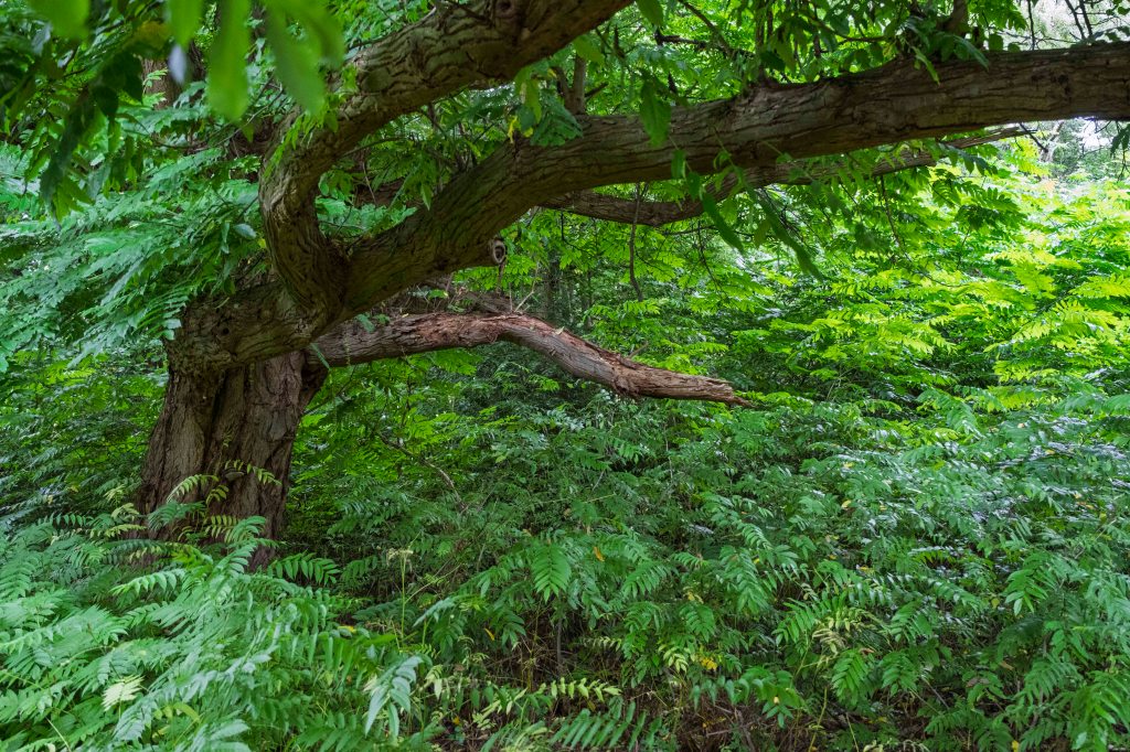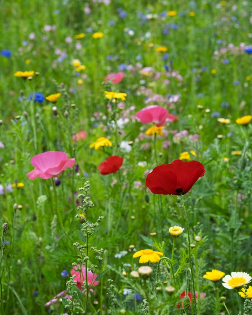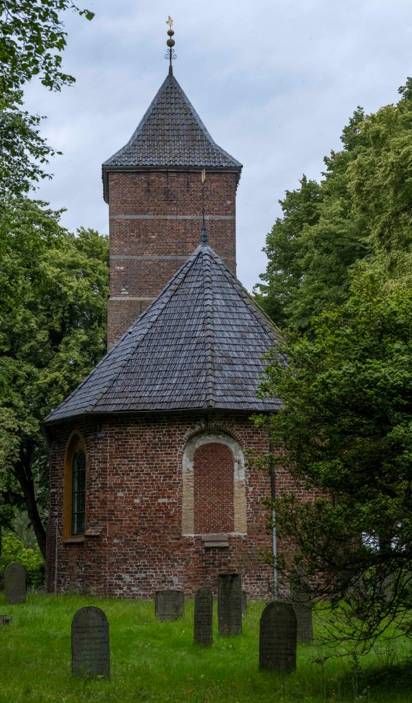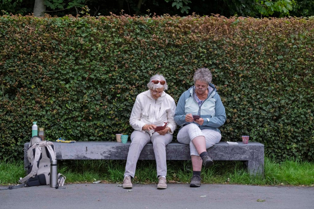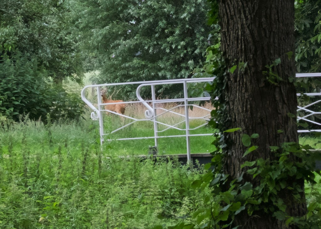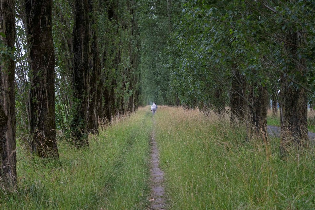 Wij lopen er even binnen om een indruk te krijgen. Het is hier heerlijk rustig met overal bloeiende bloemen en veel groen. Haast jammer dat ons pad niet dwars door dit gebied gaat, maar er net langs. Alhoewel ook ‘onze’ weg is zeker de moeite waard met hoge bomen aan beide kanten en een zandpad in het midden. We lopen eigenlijk, midden in de natuur en tegelijkertijd vlak langs Eelderwolde.